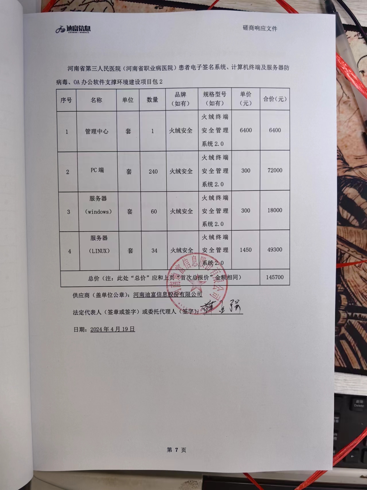2、采購項(xiàng)目名稱:河南省第三人民醫(yī)院(河南省職業(yè)病醫(yī)院)患者電子簽名系統(tǒng)、計(jì)算機(jī)終端及服務(wù)器防病毒、OA辦公軟件支撐環(huán)境建設(shè)項(xiàng)目