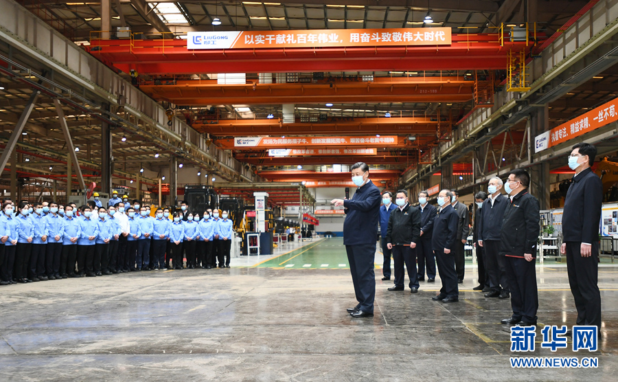 當(dāng)天下午,習(xí)近平來(lái)到柳州市考察調(diào)研。在廣西柳工集團(tuán)有限公司,習(xí)近平先后走進(jìn)公司展廳、研發(fā)實(shí)驗(yàn)中心、挖掘機(jī)裝配廠等,聽取企業(yè)發(fā)展情況介紹,察看主要產(chǎn)品展示,同企業(yè)職工和技術(shù)研發(fā)人員親切交談。習(xí)近平強(qiáng)調(diào),制造業(yè)高質(zhì)量發(fā)展是我國(guó)經(jīng)濟(jì)高質(zhì)量發(fā)展的重中之重,建設(shè)社會(huì)主義現(xiàn)代化強(qiáng)國(guó)、發(fā)展壯大實(shí)體經(jīng)濟(jì),都離不開制造業(yè),要在推動(dòng)產(chǎn)業(yè)優(yōu)化升級(jí)上繼續(xù)下功夫。只有創(chuàng)新才能自強(qiáng)、才能爭(zhēng)先,要堅(jiān)定不移走自主創(chuàng)新道路,把創(chuàng)新發(fā)展主動(dòng)權(quán)牢牢掌握在自己手中。要堅(jiān)持黨對(duì)國(guó)有企業(yè)的全面領(lǐng)導(dǎo),堅(jiān)持加強(qiáng)黨的領(lǐng)導(dǎo)和完善公司治理相統(tǒng)一,在深化企業(yè)改革中搞好黨的建設(shè),充分發(fā)揮黨組織在企業(yè)改革發(fā)展中的領(lǐng)導(dǎo)核心作用。