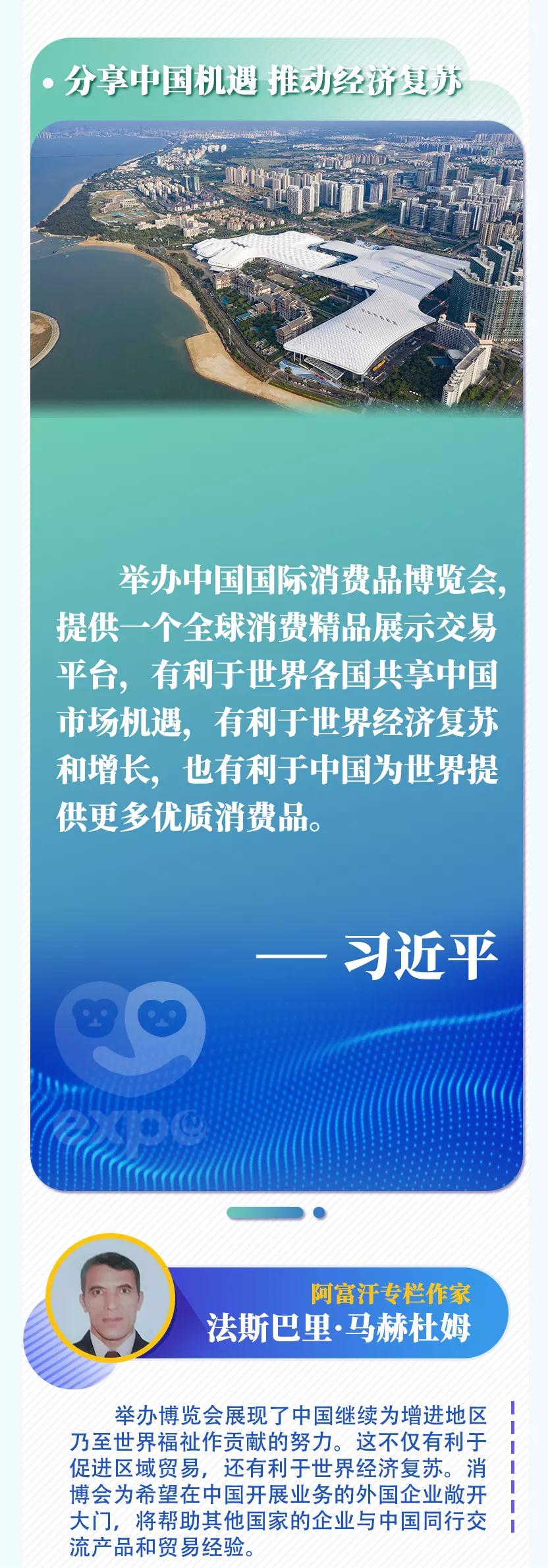 新華社北京5月7日電 首屆中國國際消費品博覽會6日在海南省??谑虚_幕,國家主席習(xí)近平致賀信。多國人士表示,舉辦國際消費品博覽會不僅是中國同各國共享發(fā)展機遇的重大舉措,還將對各國加強合作、實現(xiàn)互利共贏產(chǎn)生重要影響