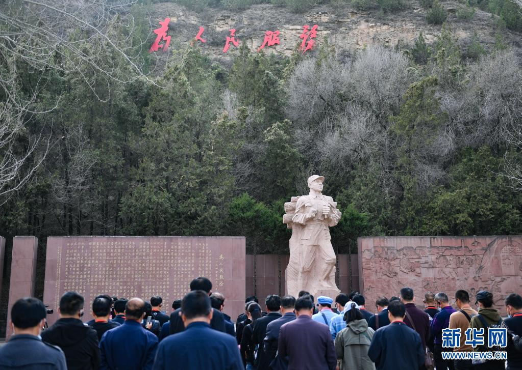 2021年3月29日,參觀者在延安市張思德廣場進(jìn)行現(xiàn)場教學(xué)活動。新華社記者 張博文 攝