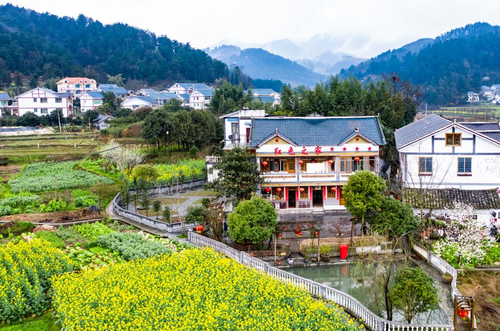遵義市楓香鎮(zhèn)花茂村村民王治強(qiáng)經(jīng)營(yíng)的“紅色之家”農(nóng)家樂(2020年2月28日攝,無人機(jī)照片)。新華社記者陶亮攝