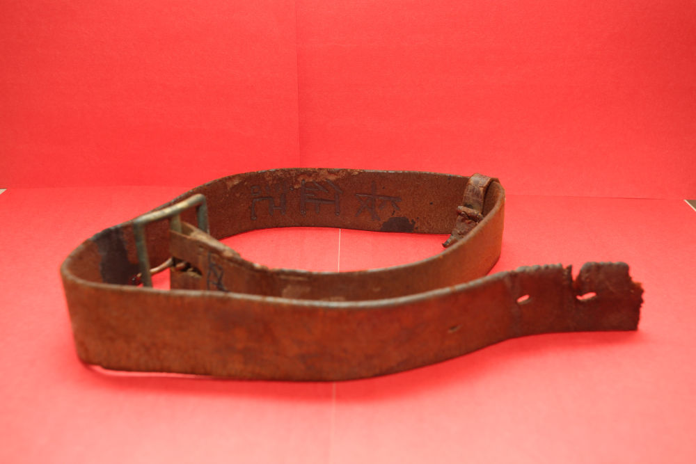 半截烙有長(zhǎng)征記字樣的老舊皮帶前,官兵們肅然站立,重溫那個(gè)85年前的紅色故事。
