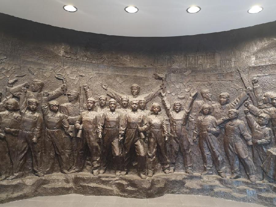 這是淮安市新安旅行團歷史紀念館內的雕塑( 2021 3 10 日攝)。新華社記者 朱筱 攝