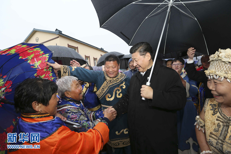 這是2016524日下午,習近平在佳木斯市同江市八岔赫哲族鄉(xiāng)八岔村冒雨與村民們交談。新華社記者 蘭紅光 攝