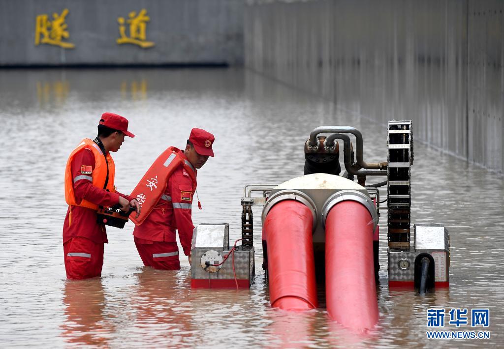 7月22日,來自江西的救援人員在鄭州市京廣南路隧道進行排澇作業(yè)。新華社記者 李安 攝