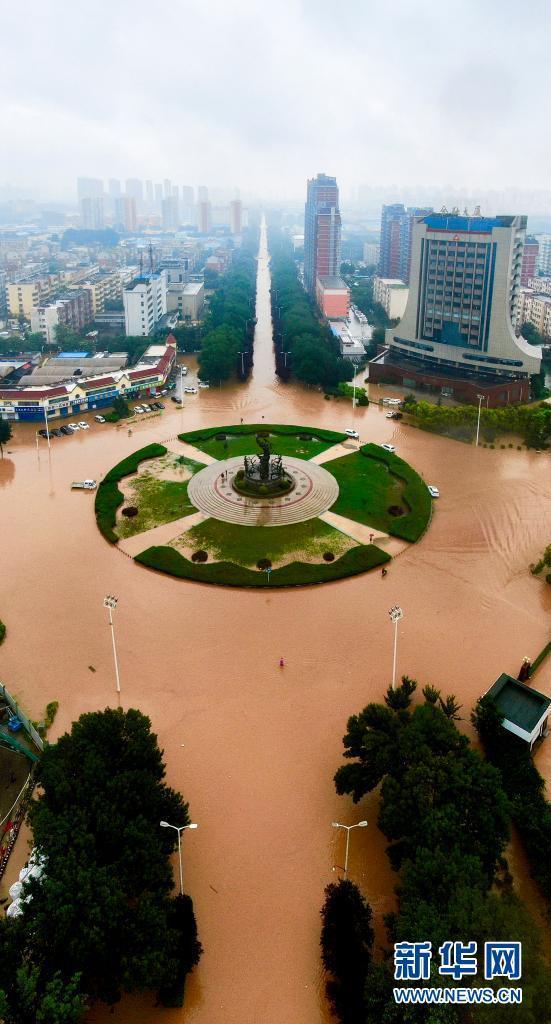 7月22日,河南安陽開發(fā)區(qū)七仙女環(huán)島被淹沒(無人機拍攝)。新華社發(fā)(馬丁 攝)