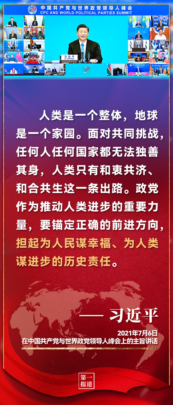在中國共產(chǎn)黨成立100周年之際,習近平同來自160多個國家的500多個政黨和政治組織等領導人、逾萬名政黨和各界代表共聚“云端”,探討“為人民謀幸福與政黨的責任”這個重大命題。