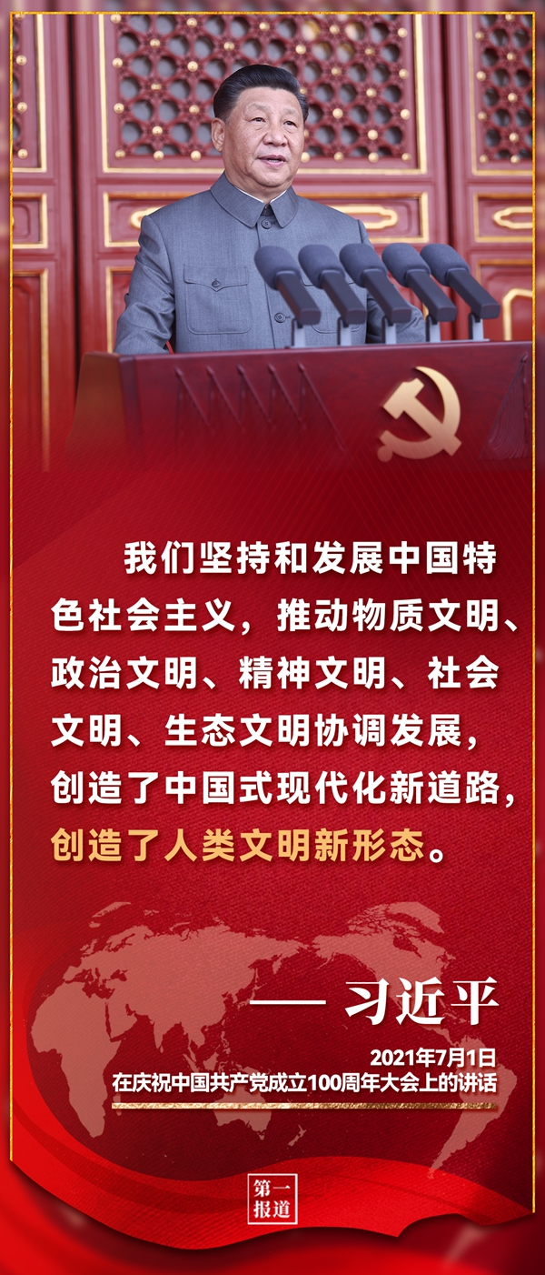 習近平強調:“中國共產(chǎn)黨將繼續(xù)同一切愛好和平的國家和人民一道,弘揚和平、發(fā)展、公平、正義、民主、自由的全人類共同價值,堅持合作、不搞對抗,堅持開放、不搞封閉,堅持互利共贏、不搞零和博弈,反對霸權主義和強權政治,推動歷史車輪向著光明的目標前進!”