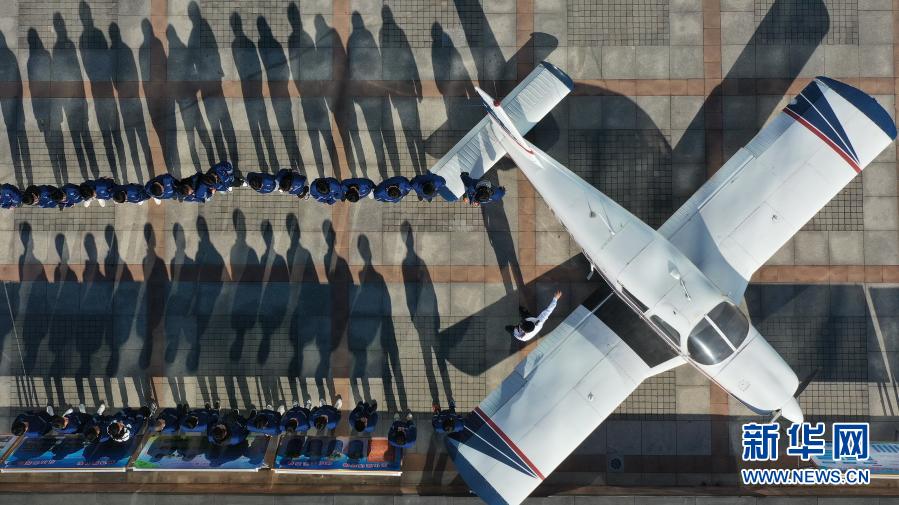 12月17日,河北省唐山市豐潤區(qū)綜合職業(yè)技術(shù)教育中心飛機維修專業(yè)教師在給學(xué)生上課(無人機照片)。新華社記者 牟宇 攝