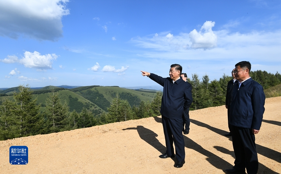 8月23日至24日,中共中央總書記、國家主席、中央軍委主席習(xí)近平在河北省承德市考察。這是23日下午,習(xí)近平在塞罕壩機(jī)械林場月亮山考察。新華社記者 謝環(huán)馳 攝