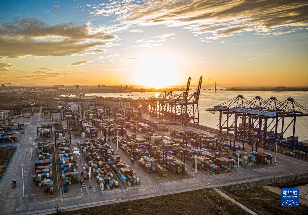這是5月26日在海南洋浦經(jīng)濟(jì)開(kāi)發(fā)區(qū)拍攝的洋浦國(guó)際集裝箱碼頭(無(wú)人機(jī)照片)。新華社記者 蒲曉旭 攝