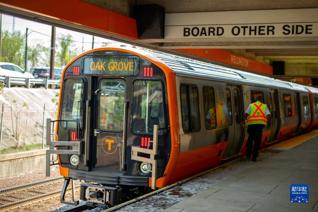 這是2018年5月15日在美國(guó)馬薩諸塞州梅德福德惠靈頓站拍攝的中車(chē)長(zhǎng)客為波士頓橙線地鐵“量身訂制”的首批車(chē)輛。這批地鐵列車(chē)整車(chē)具有完全自主知識(shí)產(chǎn)權(quán),是中國(guó)首批依照美國(guó)標(biāo)準(zhǔn)生產(chǎn)的地鐵車(chē)輛。新華社記者 李木子 攝