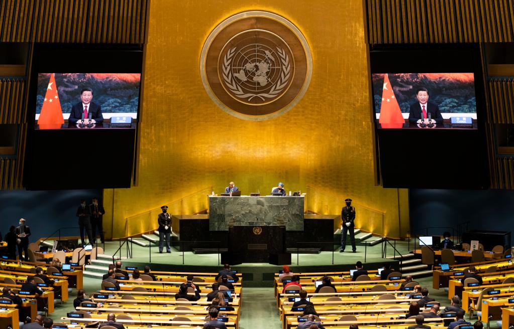 2021年9月21日,習(xí)近平在北京以視頻方式出席第七十六屆聯(lián)合國大會(huì)一般性辯論并發(fā)表重要講話。新華社記者王迎攝