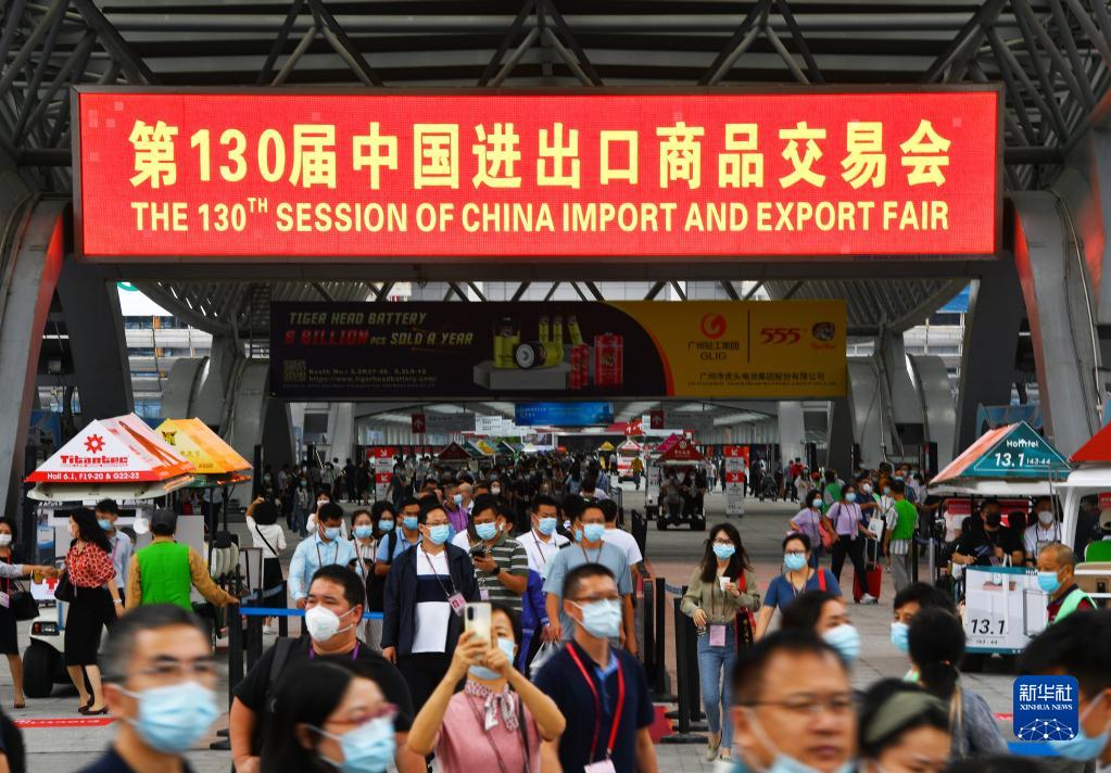 10月15日,參展人員在第130屆廣交會(huì)現(xiàn)場(chǎng)。新華社記者 劉大偉 攝