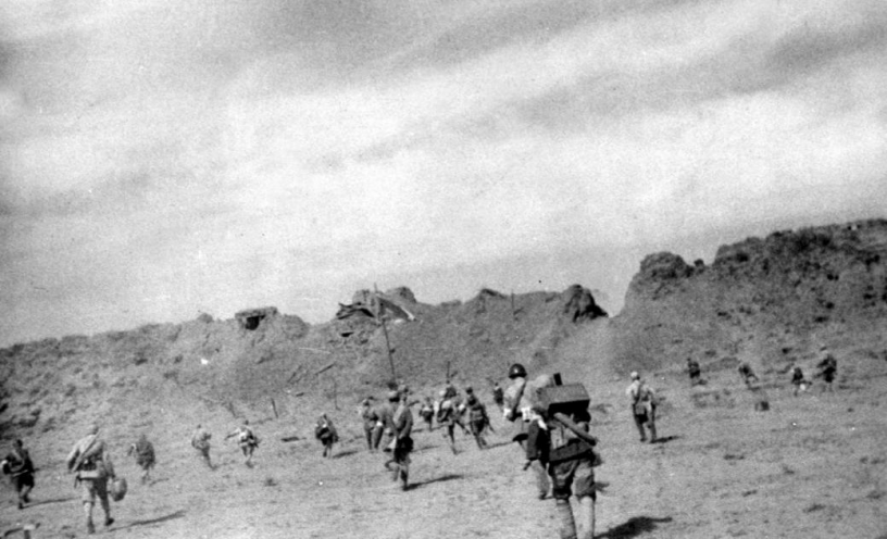 1948年遼沈戰(zhàn)役解放錦州的戰(zhàn)斗中,解放軍戰(zhàn)士沖破城防,將旗幟插在城墻上(資料照片)。(新華社發(fā))