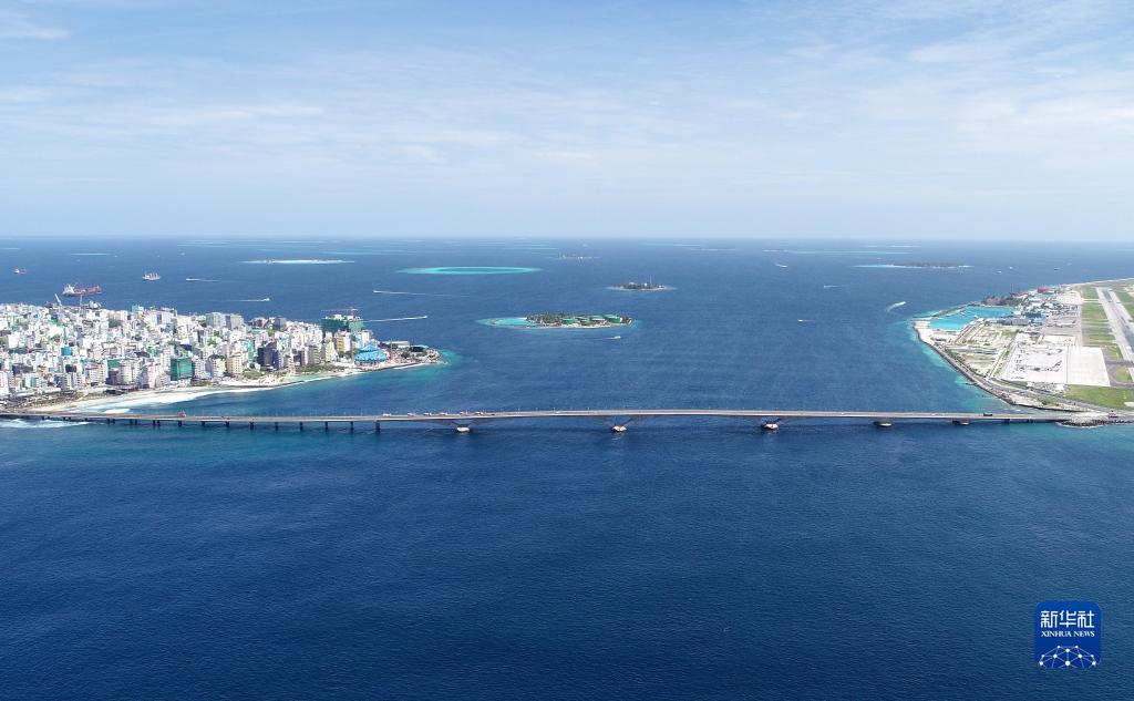 這是2019年8月30日拍攝的由中國(guó)援建的馬爾代夫中馬友誼大橋(無人機(jī)照片)。新華社發(fā)(王明亮攝)