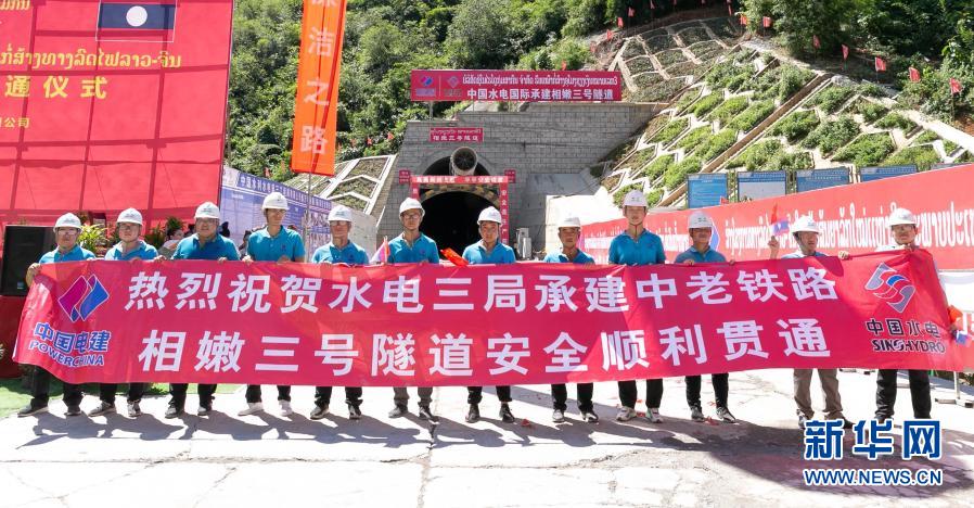 這是9月29日在老撾北部瑯勃拉邦省拍攝的相嫩三號(hào)隧道貫通儀式現(xiàn)場(chǎng)。新華社發(fā)(凱喬攝)