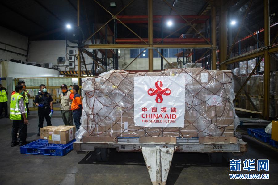 3 26 日,中國(guó)援助印度尼西亞的首批抗疫物資停放在雅加達(dá)蘇加諾哈達(dá)機(jī)場(chǎng)倉(cāng)庫(kù)。新華社記者 杜宇 攝
