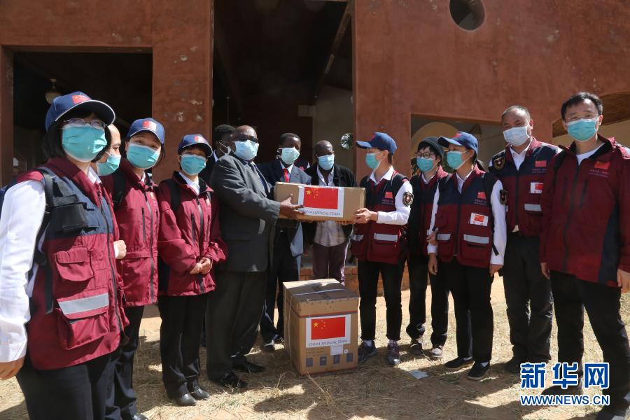 5 19 日,在津巴布韋中馬紹納蘭省的姆武爾維醫(yī)院,中國(guó)抗疫醫(yī)療專家組為當(dāng)?shù)蒯t(yī)療機(jī)構(gòu)捐贈(zèng)醫(yī)療物資。新華社記者 張玉亮 攝