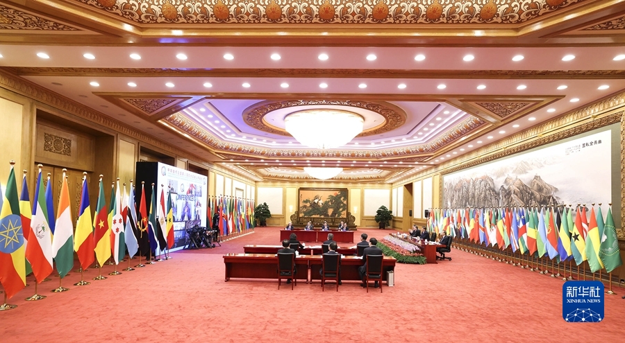 11月29日晚,國家主席習近平在北京以視頻方式出席中非合作論壇第八屆部長級會議開幕式并發(fā)表題為《同舟共濟,繼往開來,攜手構(gòu)建新時代中非命運共同體》的主旨演講。新華社記者 黃敬文 攝