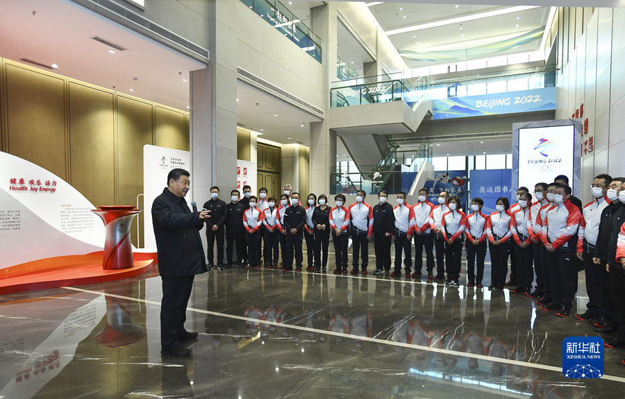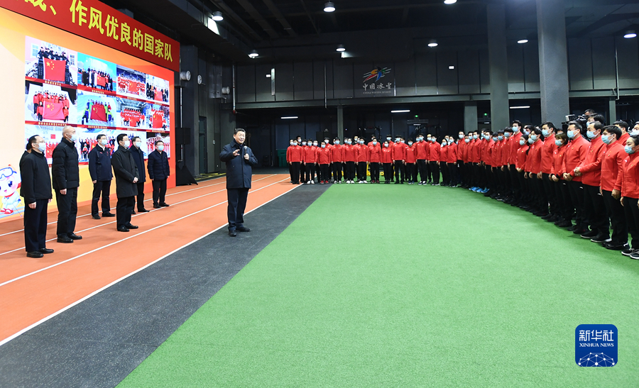 1月4日,中共中央總書記、國家主席、中央軍委主席習(xí)近平在北京考察2022年冬奧會、冬殘奧會籌辦備賽工作。這是4日下午,習(xí)近平在二七廠冰雪項目訓(xùn)練基地速滑館,向參訓(xùn)運(yùn)動員、教練員表示慰問。新華社記者 謝環(huán)馳 攝