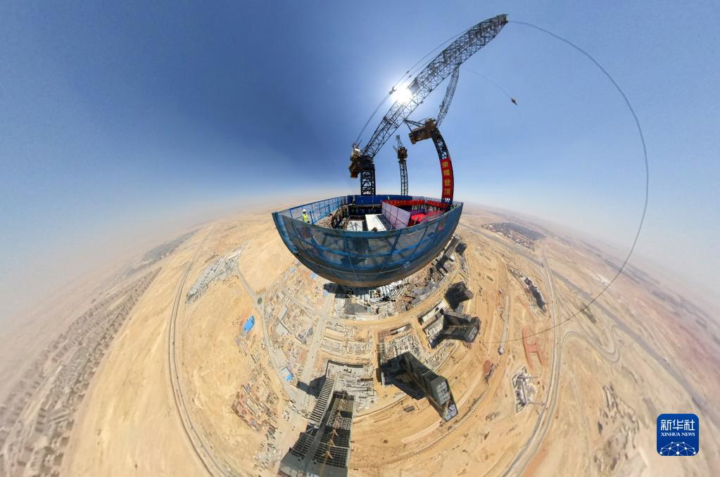 這是2021年6月17日在埃及開羅附近拍攝的埃及新行政首都中央商務(wù)區(qū)標(biāo)志塔(全景相機(jī)拍攝)。埃及新行政首都中央商務(wù)區(qū)位于首都開羅以東約50公里處,由中國(guó)建筑股份有限公司埃及分公司承建。新華社記者 隋先凱 攝
