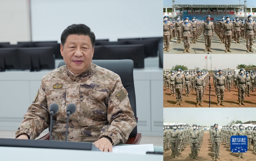 隨后,習(xí)近平同中部戰(zhàn)區(qū)海外維和分隊進(jìn)行視頻通話。來自維和步兵營、工兵分隊、醫(yī)療分隊、直升機分隊的同志們整齊列隊,依次向習(xí)近平報告。習(xí)近平向他們,并向我軍正在海外執(zhí)行任務(wù)的全體官兵表示慰問。習(xí)近平強調(diào),要忠實履行維和使命,為維護(hù)世界和平貢獻(xiàn)更多中國力量,向世界展示中國軍隊良好形象。維和任務(wù)區(qū)環(huán)境復(fù)雜,要注意加強安全防范,搞好疫情防控。