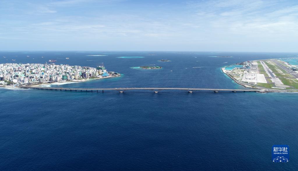 這是2019年8月30日在馬爾代夫航拍的連接首都馬累和機(jī)場(chǎng)島的中馬友誼大橋。新華社發(fā)(王明亮攝)
