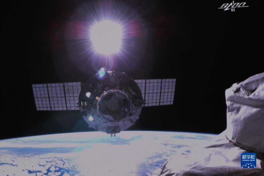 3月27日在北京航天飛行控制中心拍攝的天舟二號貨運(yùn)飛船撤離空間站核心艙組合體圖像。這是天和核心艙外景相機(jī)實(shí)時(shí)圖像。新華社記者 郭中正 攝