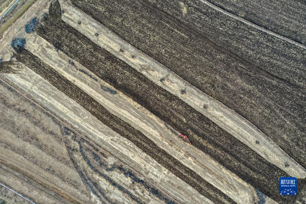 在吉林省吉林市昌邑區(qū)孤店子鎮(zhèn)紅衛(wèi)村,春新生態(tài)家庭農(nóng)場農(nóng)民駕駛農(nóng)機耕地(4月26日攝,無人機照片)。新華社記者 張楠 攝