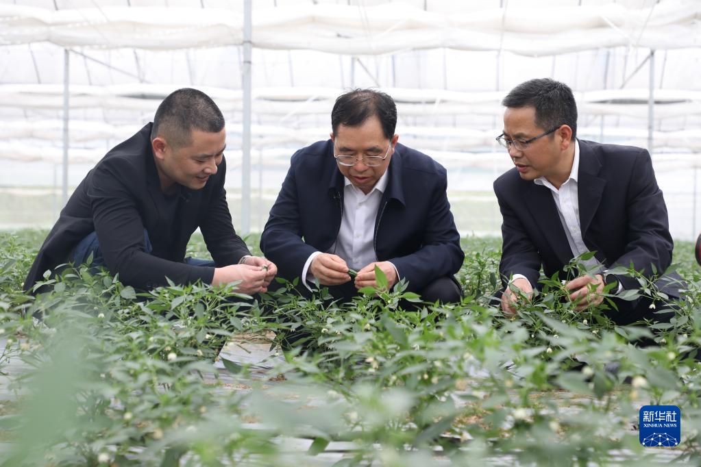 中國(guó)工程院院士、湖南農(nóng)業(yè)大學(xué)校長(zhǎng)鄒學(xué)校(中)在樟樹鎮(zhèn)的辣椒基地查看辣椒長(zhǎng)勢(shì)(資料照片)。新華社發(fā)(湖南農(nóng)業(yè)大學(xué)供圖)
