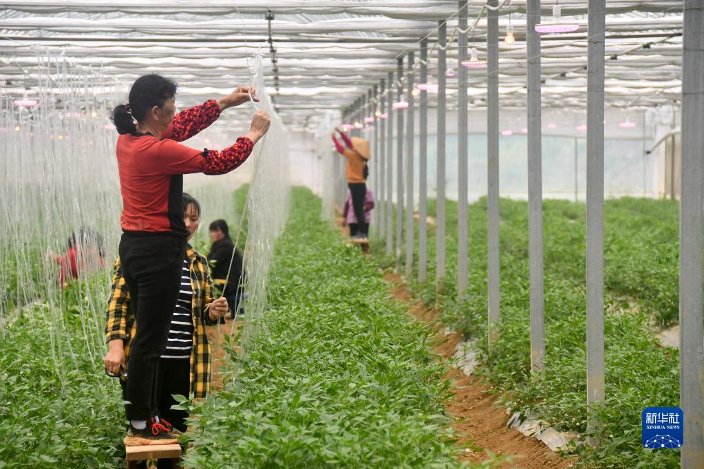 在湖南省湘陰縣樟樹鎮(zhèn),椒農(nóng)對(duì)樟樹港辣椒進(jìn)行管護(hù)(4月13日攝)。新華社記者 周勉 攝