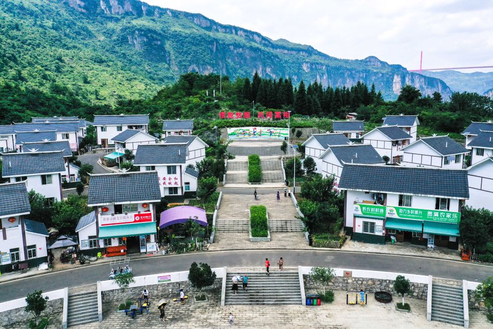 ↑2021年7月24日拍攝的貴州省黔西市新仁苗族鄉(xiāng)化屋村麻窩寨易地扶貧搬遷集中安置點(diǎn)一角(無(wú)人機(jī)照片)。