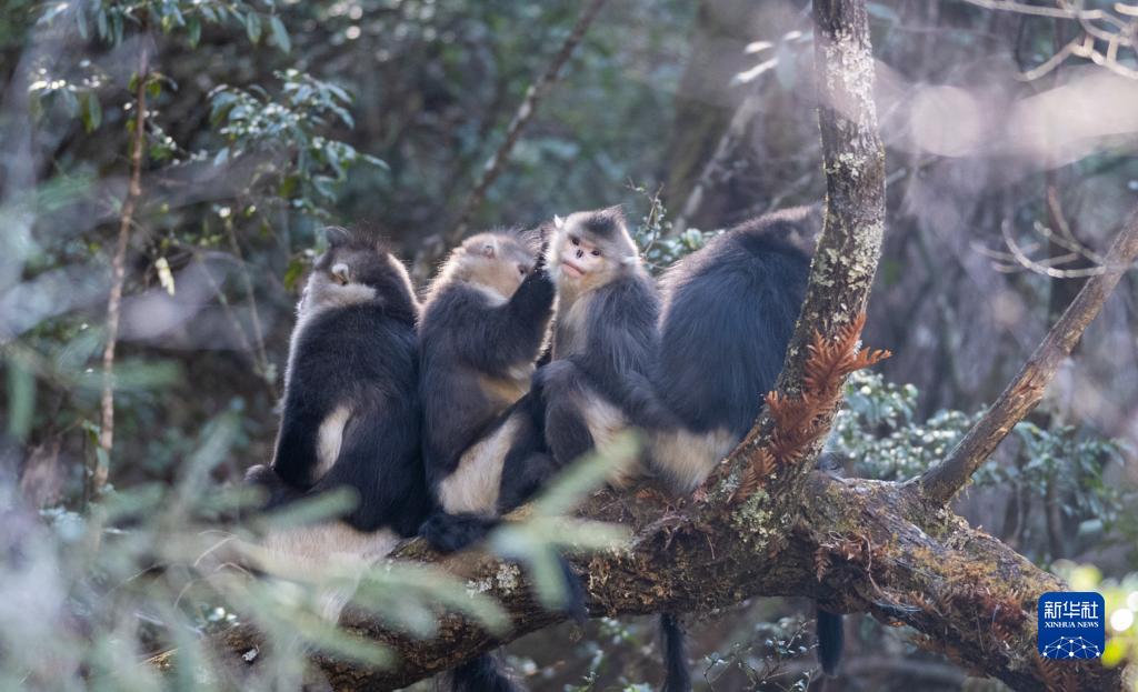 這是在云南白馬雪山國家級(jí)自然保護(hù)區(qū)內(nèi)拍攝的滇金絲猴(3月13日攝)。新華社記者 王冠森 攝