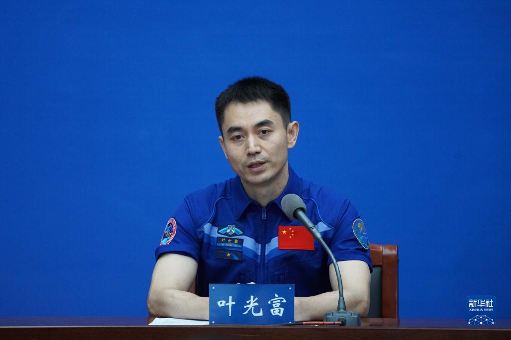 6月28日,神舟十三號(hào)航天員葉光富在北京航天城回答記者提問。新華社記者 郭中正 攝