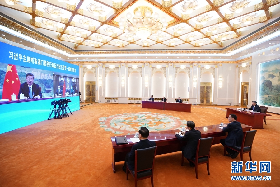 1月27日,國家主席習(xí)近平在北京以視頻連線方式聽取了澳門特別行政區(qū)行政長官賀一誠2020年度的述職報告。新華社記者 劉彬 攝