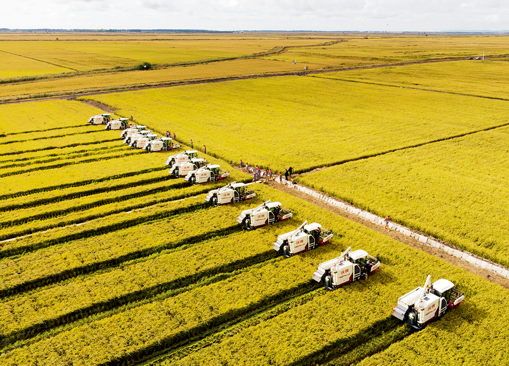 ▲ 2020年9月22日,中國(guó)農(nóng)民豐收節(jié),黑龍江省富錦市萬畝水稻公園開鐮儀式現(xiàn)場(chǎng) 張濤攝