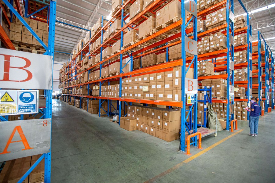 工作人員在泰中羅勇工業(yè)園的配件倉庫工作。( 新華社記者王騰攝)