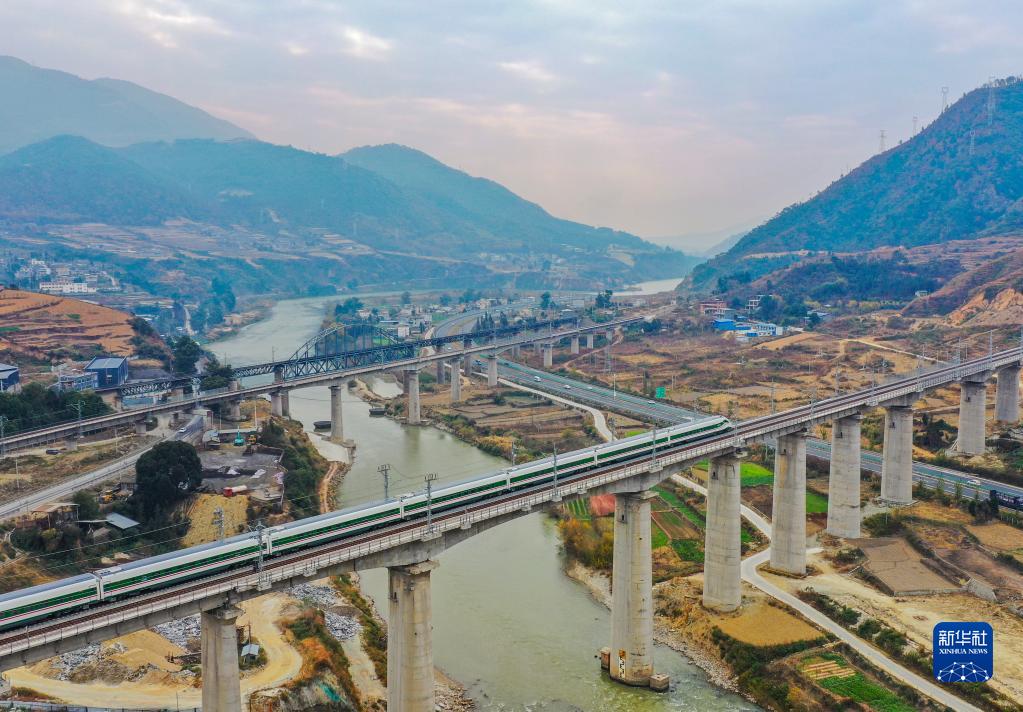 2022年12月26日,蜿蜒千里的新成昆鐵路全線貫通運(yùn)營(yíng)。復(fù)興號(hào)動(dòng)車(chē)組從成都南站發(fā)出,沿著現(xiàn)代化的鐵路,奔馳在崇山峻嶺間。