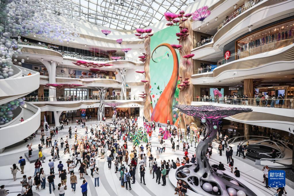 消費者在海南??趪H免稅城內購物(2022年10月28日攝)。新華社記者 張麗蕓 攝