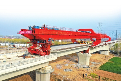 3月19日,濟(jì)鄭高鐵濮陽(yáng)至省界段項(xiàng)目全部558榀箱梁順利完成架設(shè)任務(wù)。 郝慶凱 攝