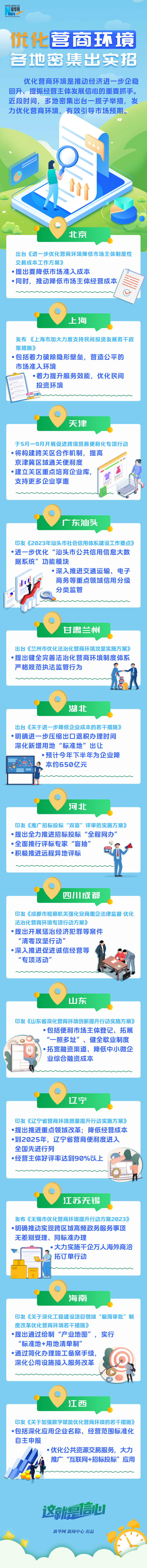 優(yōu)化營商環(huán)境是推動(dòng)經(jīng)濟(jì)進(jìn)一步企穩(wěn)回升、提振經(jīng)營主體發(fā)展信心的重要抓手。近段時(shí)間,多地密集出臺(tái)一攬子舉措,發(fā)力優(yōu)化營商環(huán)境,有效引導(dǎo)市場預(yù)期。
