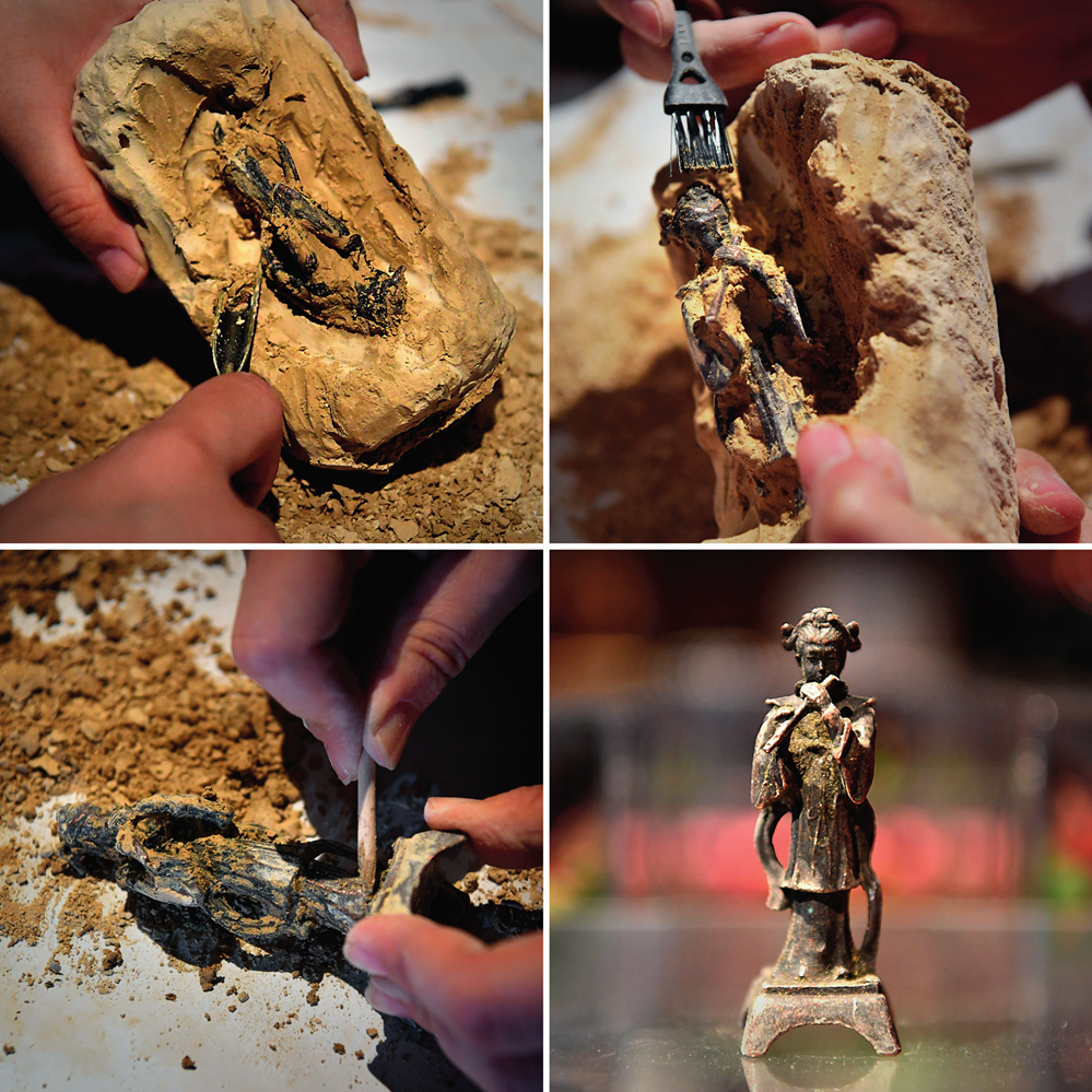 河南博物院推出的“考古盲盒”的“挖寶”過(guò)程(2022年5月17日攝) 李安攝/本刊