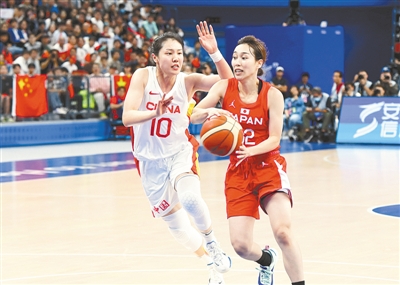 張茹(左)在女籃決賽中