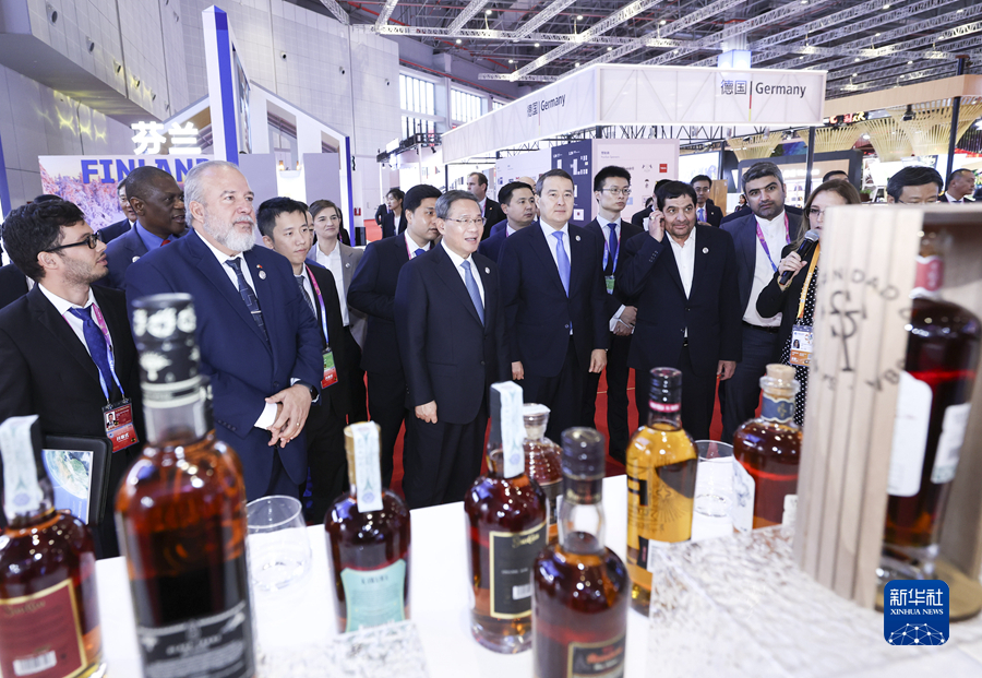 開幕式前,李強參觀了企業(yè)展。開幕式后,李強同與會外國領(lǐng)導(dǎo)人共同巡館。