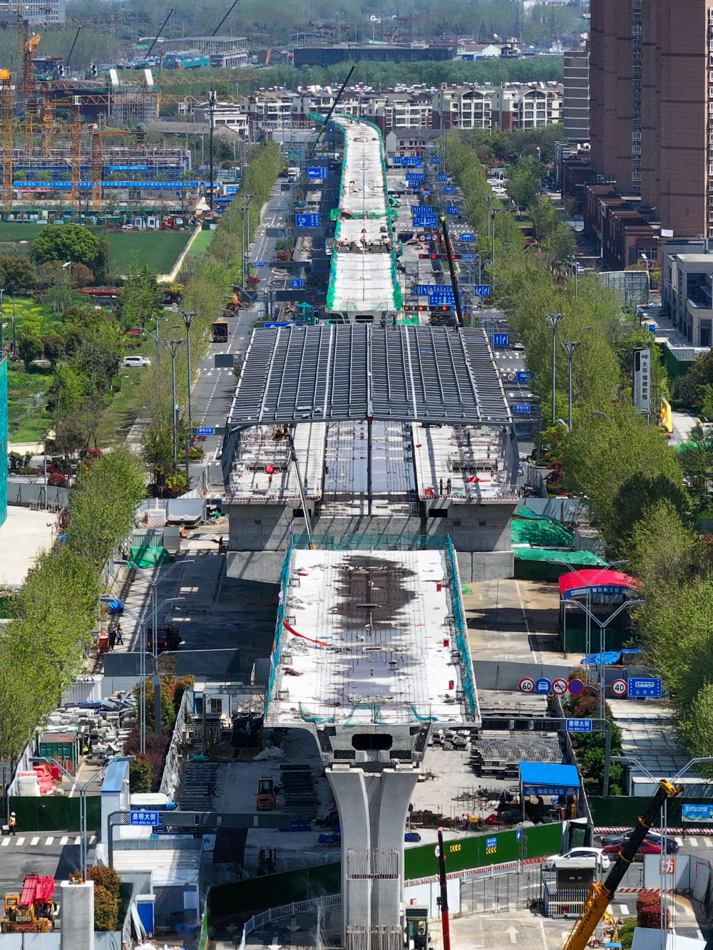??南京至馬鞍山市域(郊)鐵路全長約54.23公里,共設(shè)站16座。項目建成后,兩市中心城區(qū)僅需30分鐘即可互通互達。這是2024年4月9日在南京拍攝的該鐵路工程項目建設(shè)現(xiàn)場(無人機照片)。