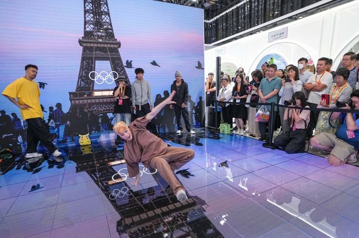 ??2024年9月14日,在2024年服貿(mào)會(huì)國家會(huì)議中心綜合展區(qū)的主賓國法國展臺,中法兩國街舞好手在表演霹靂舞。新華社記者 陳曄華 攝