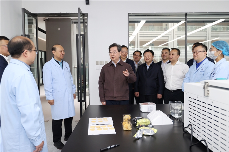 十月八日,省委書記樓陽(yáng)生到漯河市調(diào)研中原食品實(shí)驗(yàn)室技術(shù)創(chuàng)新、成果轉(zhuǎn)化等情況。 本報(bào)記者 董亮 蔡迅翔 攝