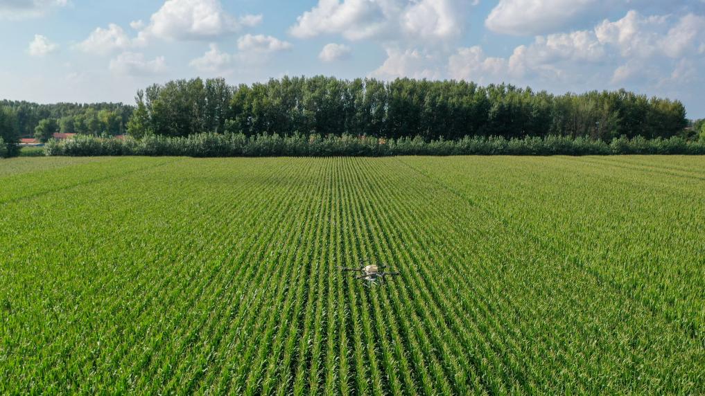 ??2024年8月8日,在吉林省梨樹縣孤家子鎮(zhèn),無人機為作物施肥(無人機照片)。新華社記者 張楠 攝